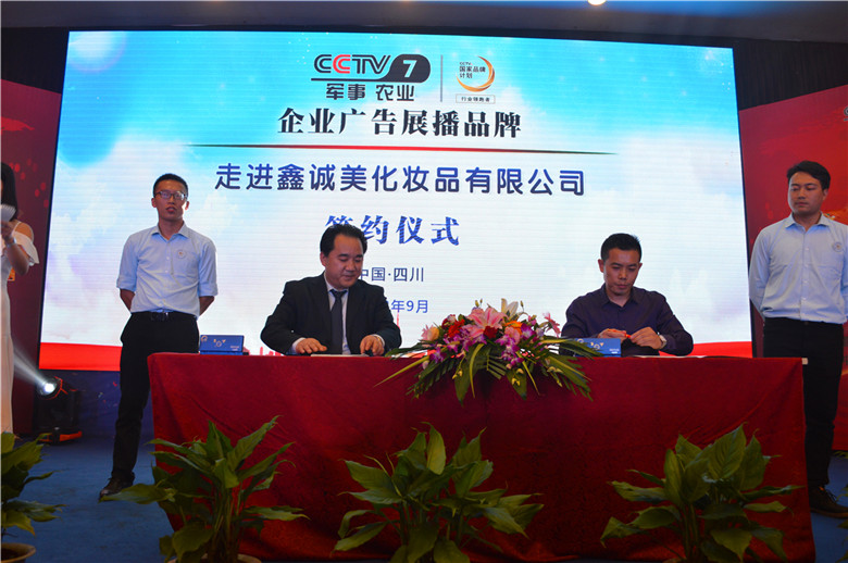 在兩百多位美業(yè)精英的見(jiàn)證下,CCTV與成都鑫誠(chéng)美簽約企業(yè)廣告展播品牌!